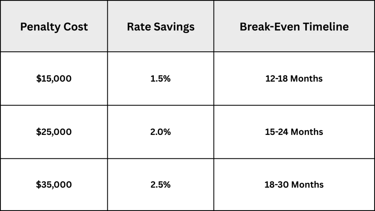 Yes, some mortgages have early payout penalties. A break-even analysis helps determine if refinancing is still beneficial.
