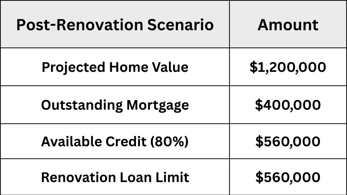 Here's where the magic happens: We calculate your borrowing power based on your home's post-renovation value, not just what it's worth today.
